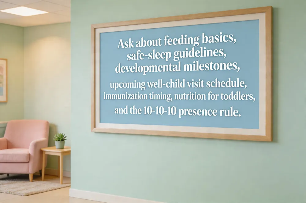 When you walk into the office for your child's first pediatric visit, bring essential items—insurance card, growth charts, a change of clothes, and a list of questions. Ask about feeding basics, safe‑sleep guidelines, and the developmental milestones you should see in the coming weeks. Confirm the schedule for upcoming well‑child visits, immunizations, and any screening tests.