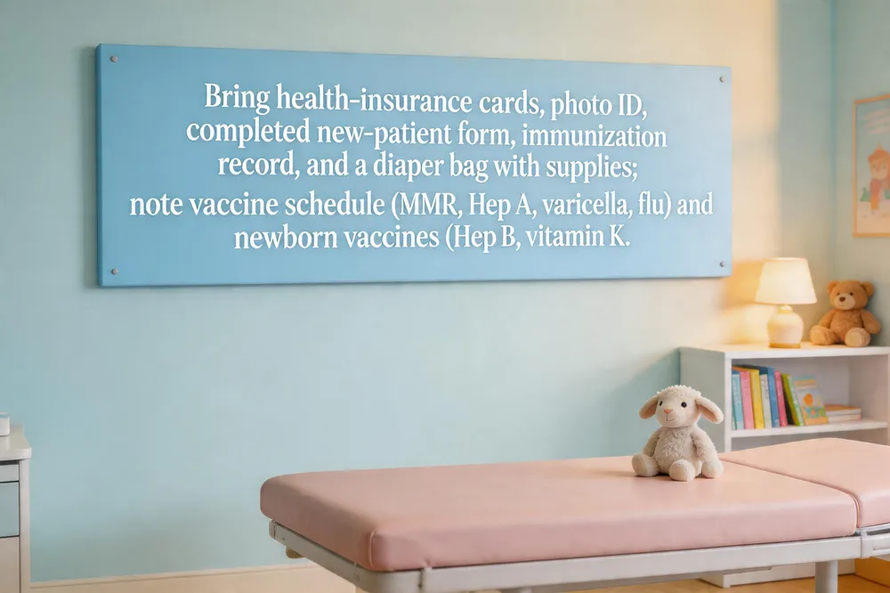Essential documents and identification – Bring health insurance cards and a photo ID for the parent or guardian to the first pediatrician appointment. A completed new‑patient form (if provided ahead of time) and the immunization record or vaccination card should also be on hand.