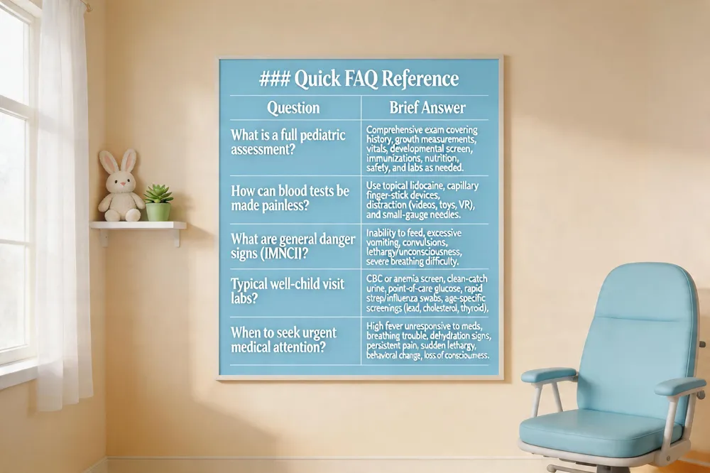 In‑office pediatric labs let families skip extra trips, get rapid results, and keep children in a familiar, comforting environment—key for reducing anxiety and ensuring accurate samples. To make the most of this convenience, parents should discuss the test’s purpose with the pediatrician, schedule it when the child is rested and well‑hydrated, use age‑appropriate explanations and play‑based rehearsals, and bring a favorite toy or distraction. Simple calming techniques—deep breaths, counting, or a short video—help the child stay still. If the child becomes distressed, experiences unexpected pain, or the results are abnormal, contact the provider promptly for reassurance, possible repeat testing, or specialist referral.