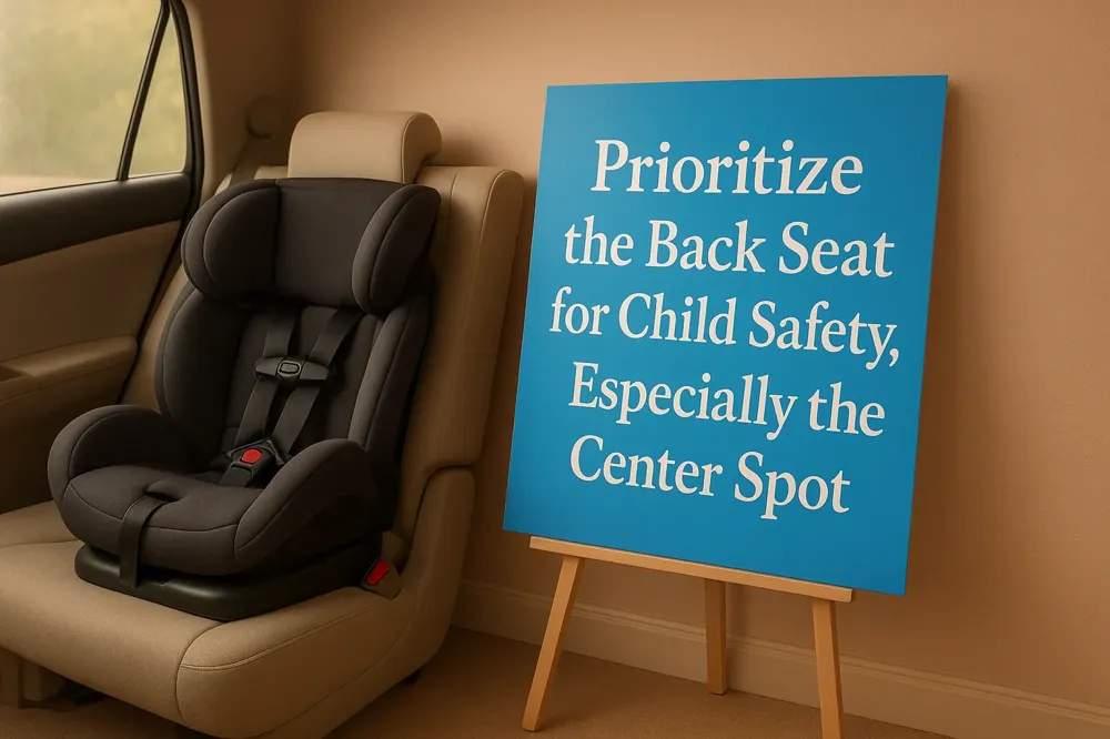 Among back seat positions, the rear center seat is the safest spot for children. It offers the greatest distance from the vehicle’s sides, which are vulnerable areas during side collisions. Studies reveal that children in this position experience about 43% less risk of injury compared to those sitting by the rear windows. Installing the child car seat securely in this middle spot further maximizes protection. Learn more at Child Passenger Safety and Rear seat for children under 13.