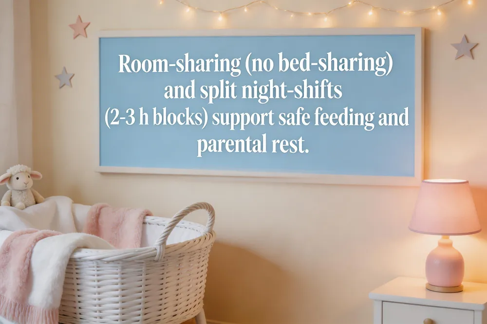 Night‑shift feeding schedules for parents: Split nighttime duties into 2‑hour or 3‑hour blocks. One parent handles two consecutive feedings and diaper changes, then swaps so the other can enjoy a 3‑4‑hour uninterrupted stretch. Keep the baby’s sleep space within arm’s reach, dim lights, and limit stimulation to preserve the night‑time sleep cue.