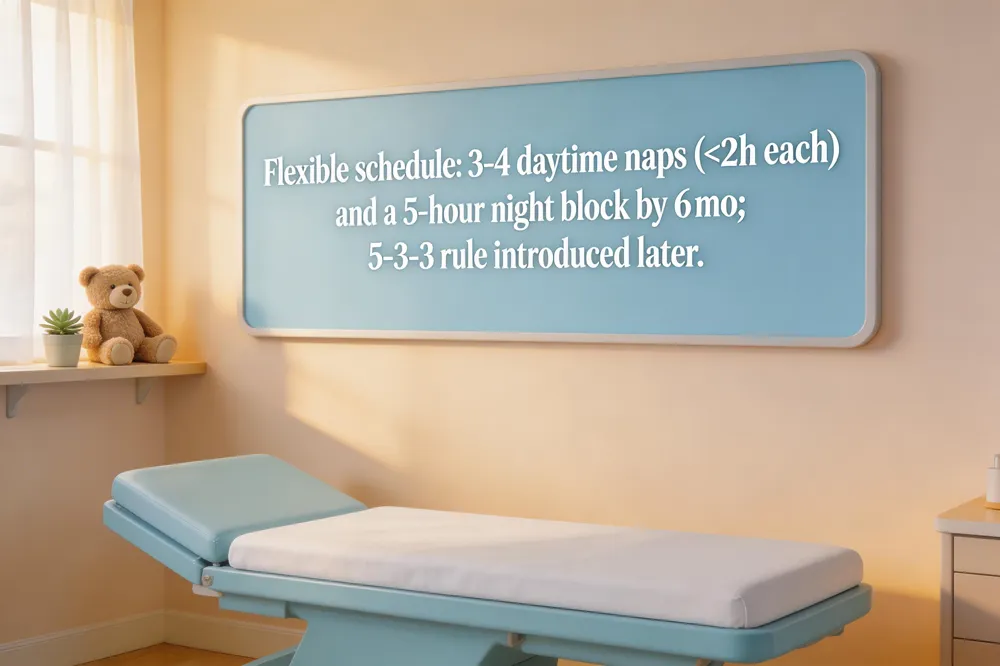 The 5‑3‑3 rule, typically introduced around six months when the circadian rhythm is more stable, calls for a five‑hour nighttime block, a three‑hour wake period, then another three‑hour sleep block. This gentle framework encourages self‑soothing and longer night sleep while still meeting nutritional needs.
