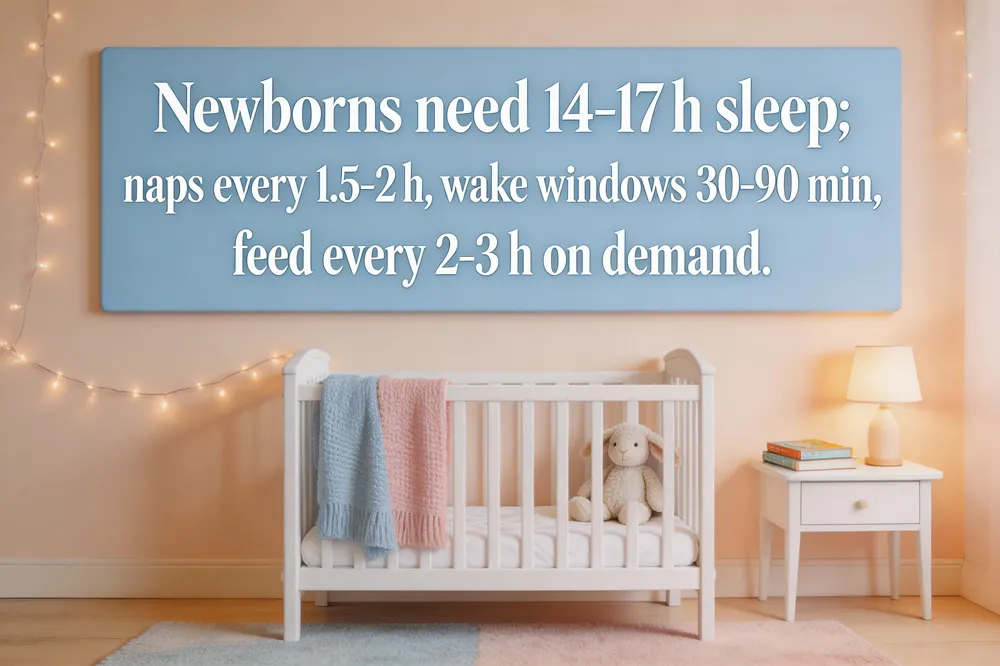 Newborns (0‑3 months) need 14‑17 hours of sleep in a 24‑hour day, but the total can range from 11 to 19 hours depending on the baby’s size, feeding method, and individual temperament. Because their stomachs are tiny, they wake every 2‑4 hours to eat; parents should feed on hunger cues and, if a baby sleeps longer than 3‑4 hours, gently wake the infant for a feed until weight gain is adequate. Safe‑sleep guidelines are non‑negotiable for every nap and nighttime sleep: place the baby on its back on a firm, flat surface; keep the crib free of blankets, pillows, bumper pads, and toys; room‑share (but never bed‑share) for at least the first six months; dress the infant lightly to avoid overheating. Rather than imposing a rigid clock, follow the baby’s sleepy cues—quiet alert, yawning, rubbing eyes—and use a simple routine (diaper change, lullaby, swaddle) to signal sleep time. If the infant shows persistent overtiredness, poor weight gain, or unusual sleep patterns, consult a pediatrician promptly.