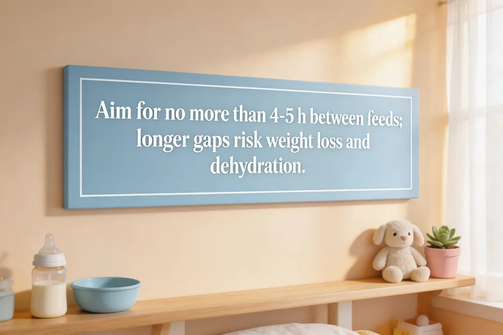 Newborns need frequent calories for rapid growth, so feeding every 2‑3 hours (breast‑fed) or 3‑4 hours (formula‑fed) is essential. A stretch longer than 4‑5 hours without a feed can lead to weight loss, dehydration, and overtiredness. Newborn slept 7 hours without feeding – this exceeds the safe window. Gently wake the baby, offer a feeding, and monitor weight gain and diaper output. If long stretches persist, contact your pediatrician promptly, especially for premature or low‑weight infants.