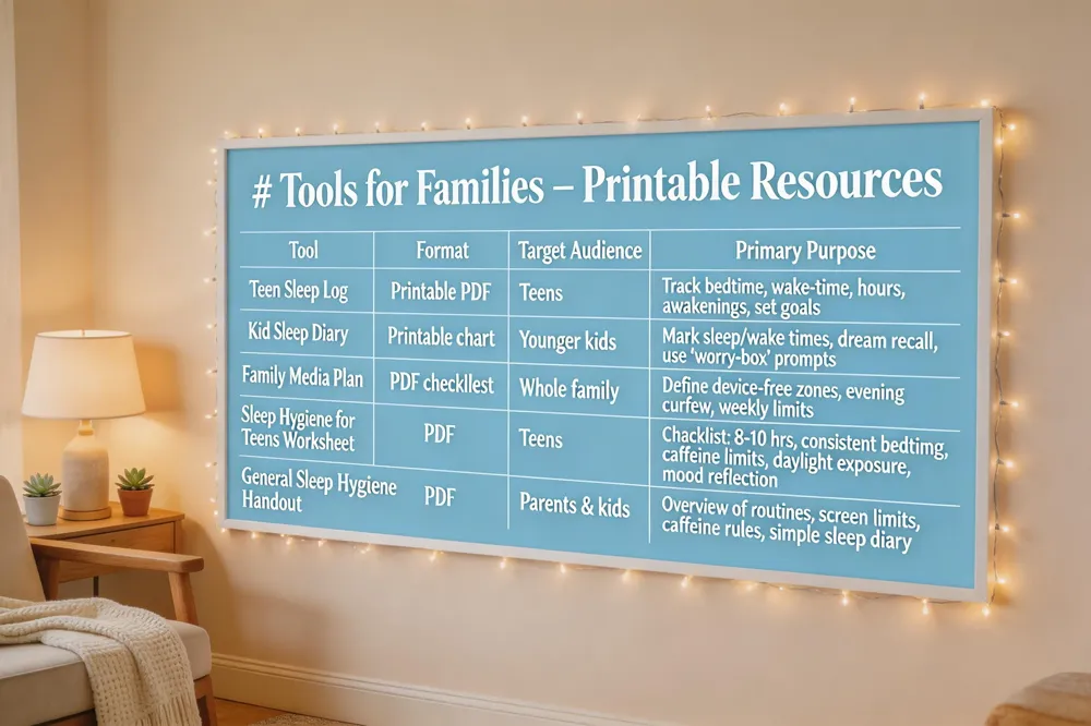For detailed guidance, download the free "Sleep‑Hygiene Handout" PDF from Kids & Teens Primary Healthcare, which outlines bedtime routines, screen limits, caffeine rules, and a simple sleep‑diary. Always discuss any supplement or persistent sleep problem with your child’s pediatrician.