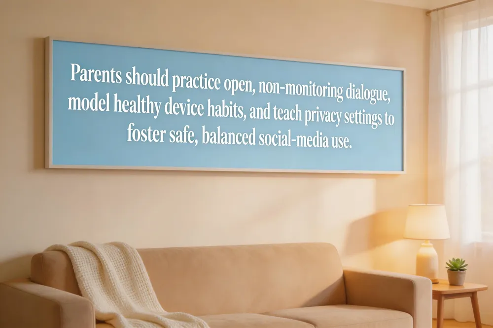 Effective parenting in the digital age hinges on three core practices. First, use Open, non‑monitoring communication—ask open‑ended questions, validate feelings, and keep the tone curious rather than investigative—so teens feel safe sharing online experiences. Second, model healthy device habits yourself; limit personal screen time, keep phones out of the bedroom, and demonstrate tech‑free moments at meals to reinforce the rules you set. Third, Teach teens about privacy settings—help teens spot edited images, recognize algorithmic bias, and evaluate the credibility of mental‑health information they encounter.