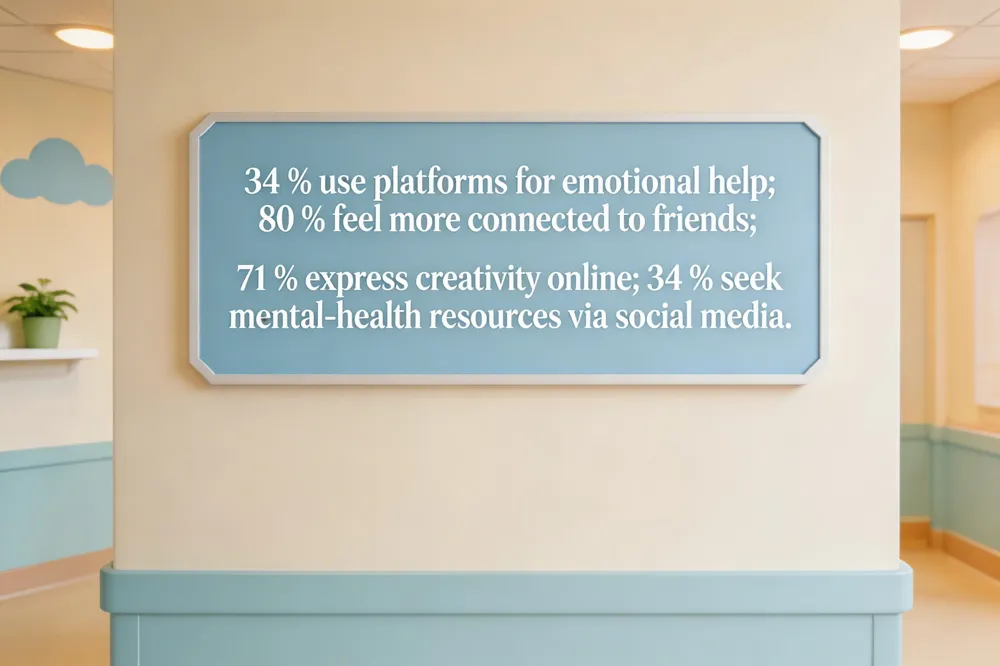When used thoughtfully, social media can be a powerful ally for teens. It offers a sense of peer connection and support—[34 %] of adolescents report that platforms provide emotional help during tough times, and [80 %] feel more linked to friends (Pew Research, 2022). Creative self‑expression thrives online: [71 %] of teens say social media lets them showcase art, music, or writing, fostering confidence and identity development. Moreover, these platforms serve as conduits for mental‑health resources; [34 % of teens turn to social media for information, and 63 %] of them consider it an important source. While these benefits can boost well‑being, [parents should still model healthy habits, keep open dialogues] and know when professional help is needed—especially if a teen shows signs of anxiety, depression, or other distress. Balancing online positivity with vigilant care helps teens reap the rewards of digital connection without compromising their mental health.