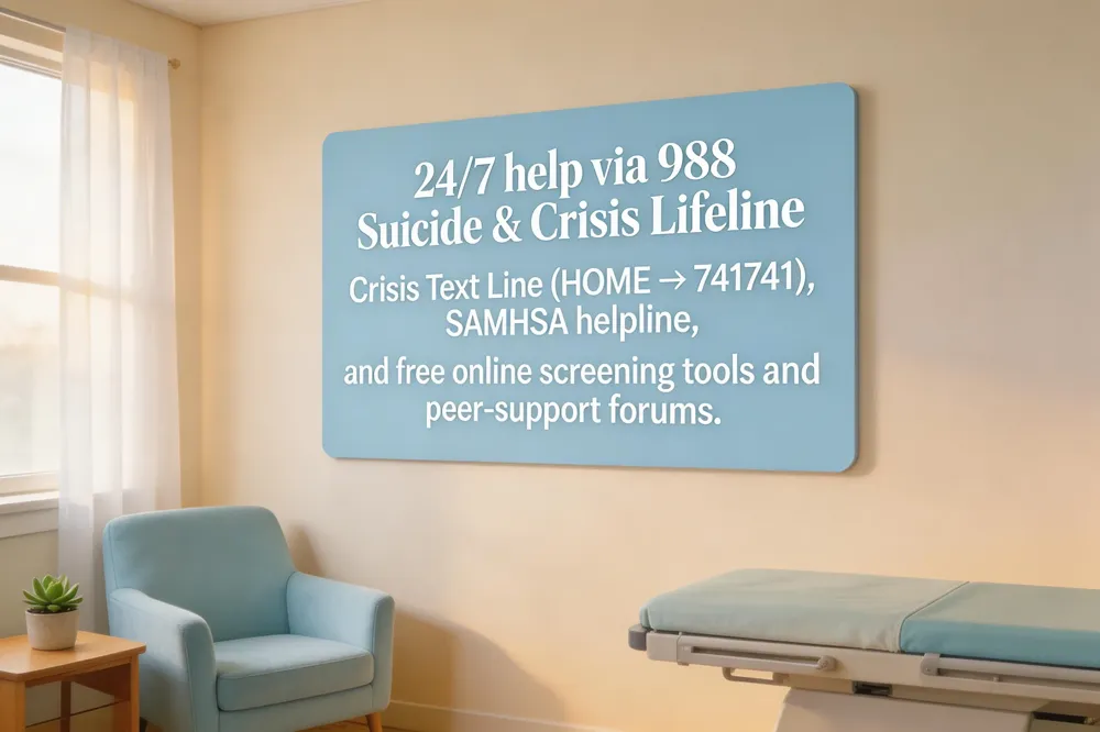Teens can call/text 988 Suicide & Crisis Lifeline or HOME to 741741 for immediate help. SAMHSA’s Helpline offers free referrals, and primary‑care visits include depression screenings. Apps like ADAP, AACAP fact sheets, and videos such as “Ellie’s Depression” give practical coping tools and education.
