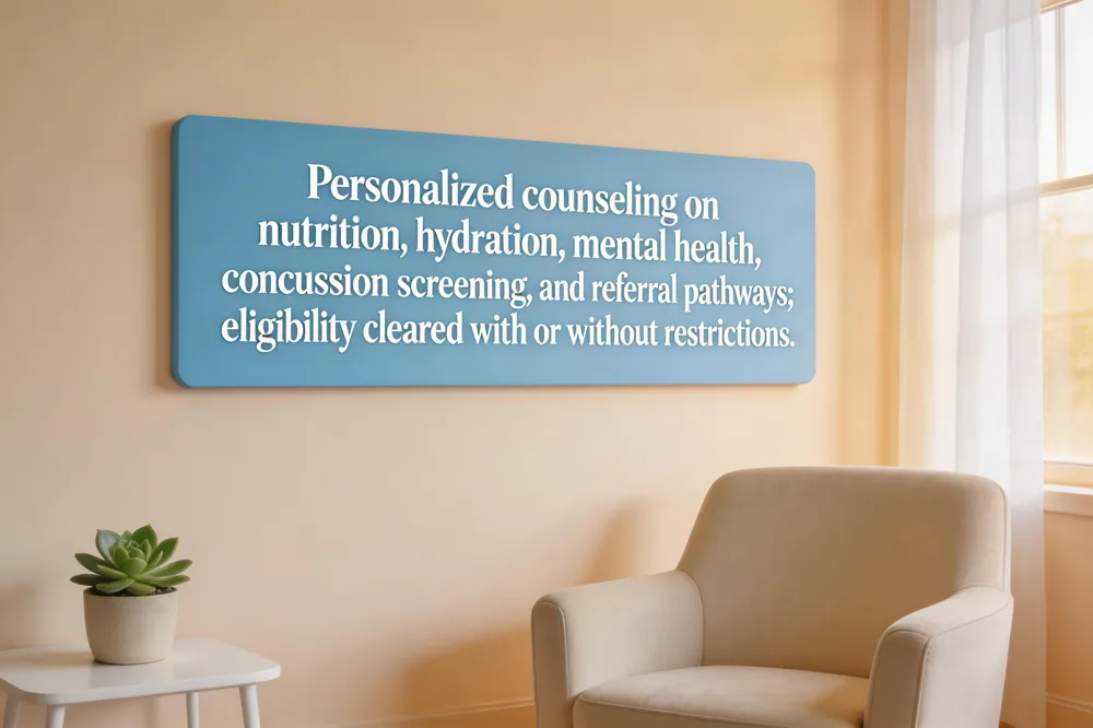 A sports physical does more than clear a child for the season—it launches a partnership for ongoing health. During the exam the clinician reviews a detailed health‑history questionnaire covering past illnesses, surgeries, allergies, medications, family cardiac history, and any prior sports injuries or concussions. Height, weight, blood pressure, heart rate, vision, and cardiopulmonary auscultation follow, along with a musculoskeletal screen for strength, flexibility, joint stability, and posture. Boys may receive an external genital check, while girls are asked about menstrual health. The provider then offers personalized counseling on nutrition, hydration, and injury‑prevention strategies such as proper warm‑ups and equipment use. Mental‑health and concussion screening are integral, identifying stress, anxiety, or lingering post‑concussion symptoms that could affect performance. If concerns arise, the physician outlines referral pathways—cardiology, orthopedics, physical therapy, or sports‑medicine specialists—and assigns an eligibility category: unrestricted clearance, clearance with restrictions, or clearance pending further evaluation. This comprehensive approach, endorsed by the American Academy of Pediatrics, ensures the young athlete stays safe, healthy, and ready to enjoy sports for years to come.