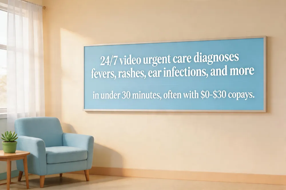 Insurance coverage mirrors in‑person rates: most commercial plans require a $25‑$30 copay, while Medicaid, TRICARE, and many state programs are $0. Self‑pay families enjoy a $100 prompt‑pay discount, billed in full after the visit. This model delivers fast, safe, and cost‑effective care while keeping families at home.