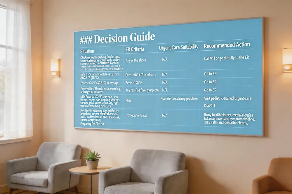 | Situation | ER Criteria | Urgent Care Suitability | Recommended Action |