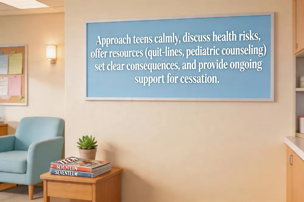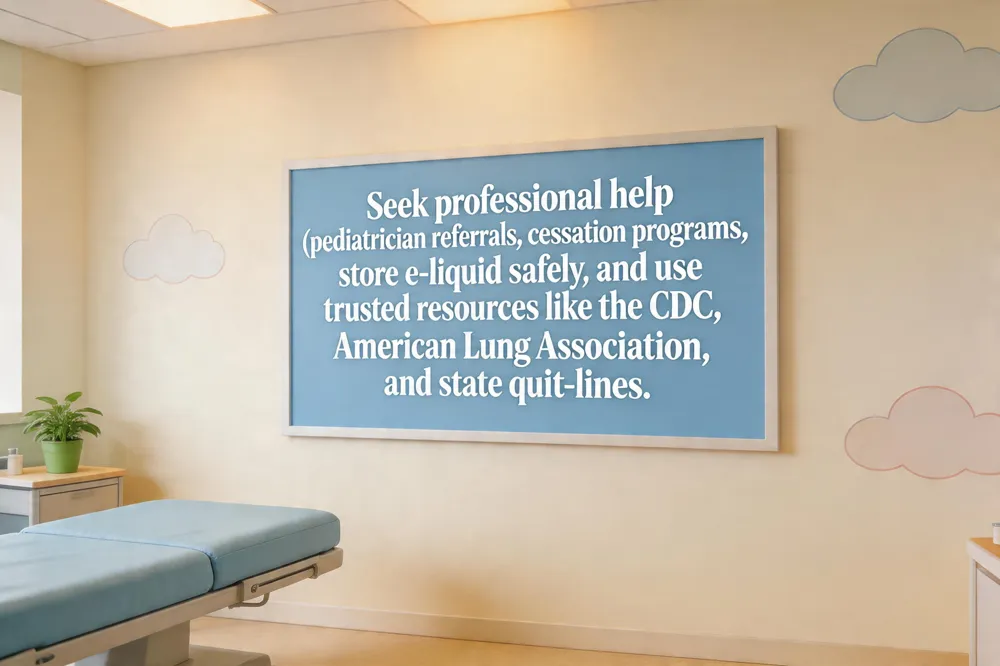 Professional help and cessation programs – Pediatricians can refer teens to specialized vaping clinics (e.g., Dr. Irina Dralyuk’s clinic at Cedars‑Sinai Children’s Health Center) or programs like the Truth Initiative’s EX/text‑to‑quit service. Nicotine‑replacement therapy may be prescribed under medical supervision.