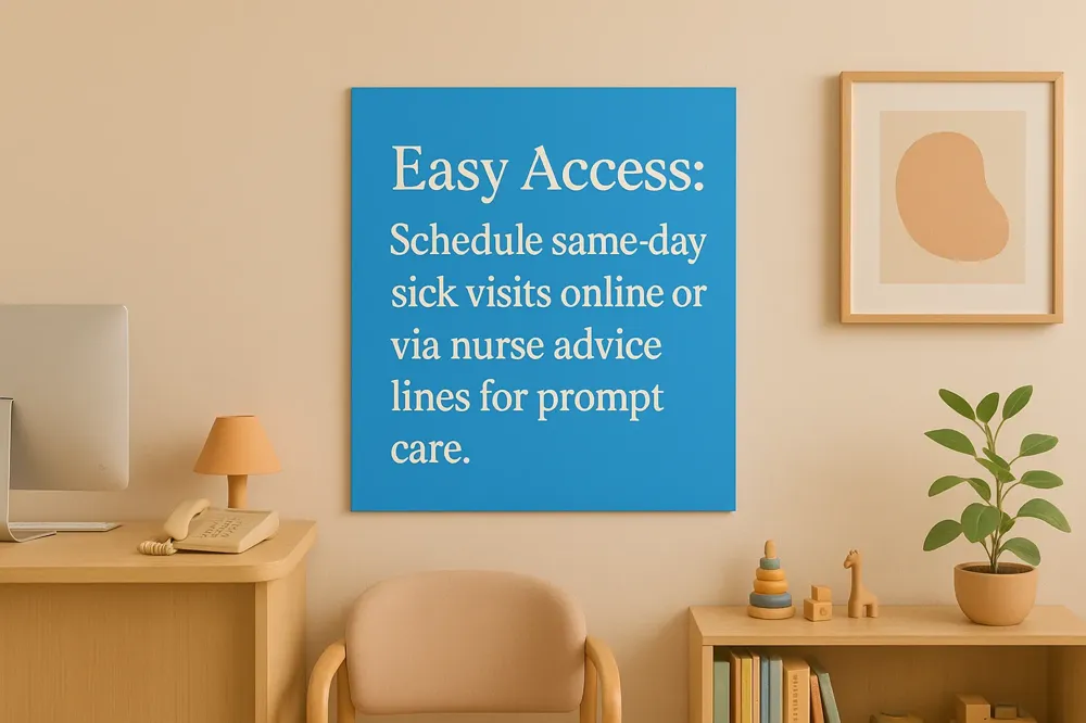 Pediatric care providers commonly offer Same-Day Sick Visits to ensure children receive timely medical attention for acute illnesses and injuries. Practices such as Kids & Teens Primary Healthcare in Decatur, Georgia, and JC Peds in Missouri provide promptly scheduled appointments to diagnose and treat conditions like fever, ear infections, vomiting, and minor injuries without long waits. This immediacy helps in quicker recovery and reduces unnecessary emergency room visits.