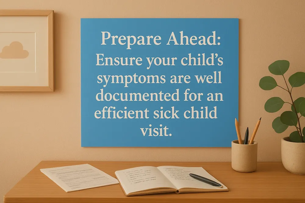 Before a sick child visit, parents should carefully observe and document their child's symptoms. This includes noting the onset, duration, and severity of symptoms such as fever, vomiting, diarrhea, or rash. Writing down any medications the child has taken and any recent illnesses or exposures helps provide a complete health history. Parents are encouraged to call the pediatric office early to schedule a same-day appointments for sick children if their child's condition requires prompt attention.
