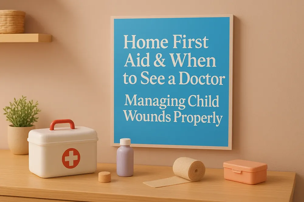 For small cuts that are less than half an inch long and not bleeding heavily, home care usually suffices. First, calm the child and wash your hands. Apply gentle pressure to stop any bleeding using a clean cloth. Clean the wound carefully with mild soap and water, removing visible dirt particles to help prevent infection. After cleaning, apply an antiseptic ointment and cover the wound with a sterile bandage. Change the dressing daily while keeping the wound dry to promote healing.